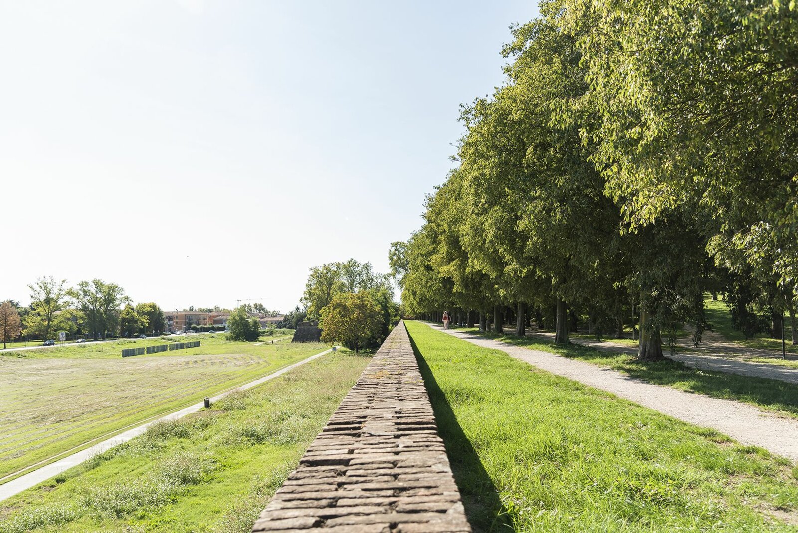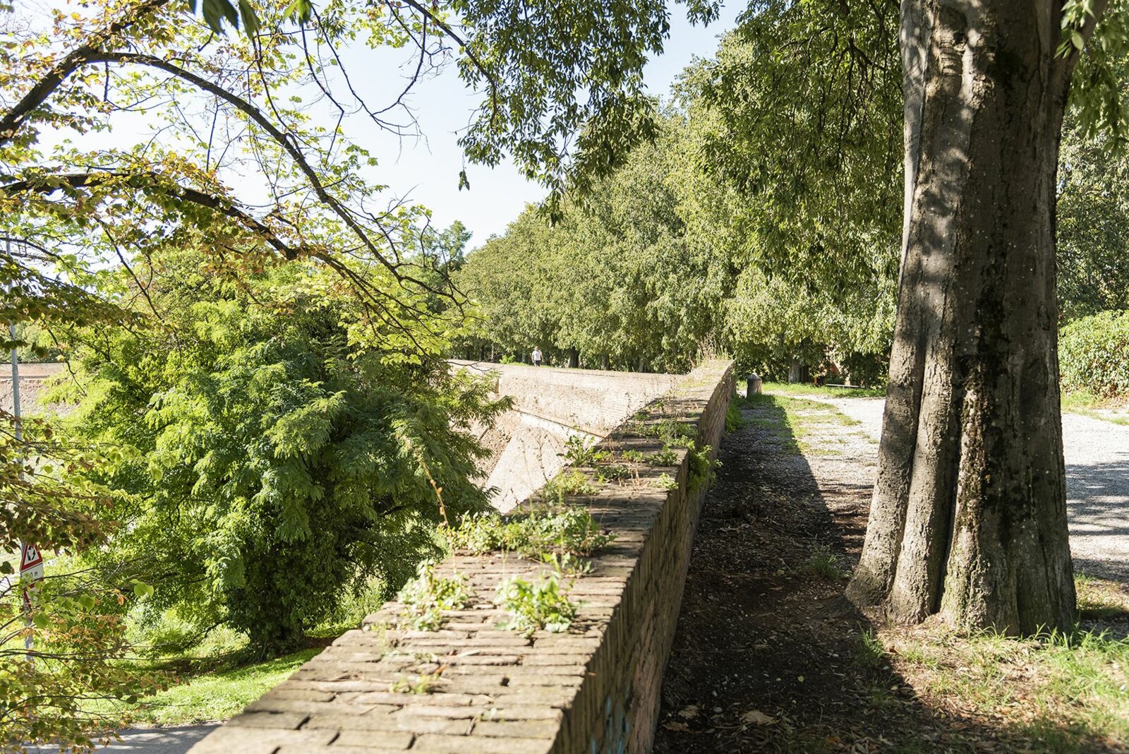 Today Ferrara’s city walls have completely lost all defensive use. Over the centuries, some parts, in particular, have become large gardens surrounding the Renaissance city. In the 1970s and 1980s, they were subject to a major urban green redevelopment plan, called Addizione Verde – a reference to the Addizione Erculea. This route alternates between flat areas and lawns, rows of trees and areas with thicker, almost woodland vegetation, with bicycle and pedestrian paths.